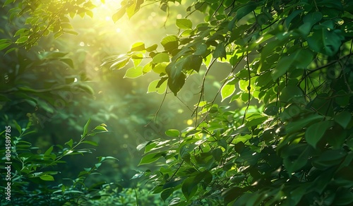 Obraz premium Sunlight filtering through tree leaves