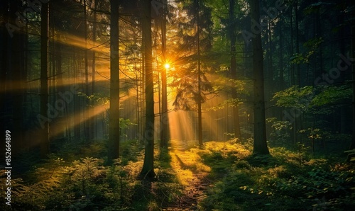 © peppastocker, Fototapeta premium Sunlight filtering through trees