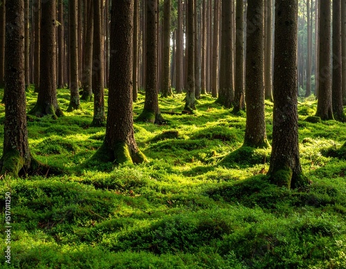 © Siti, Obraz premium Sunlight filters through a dense forest