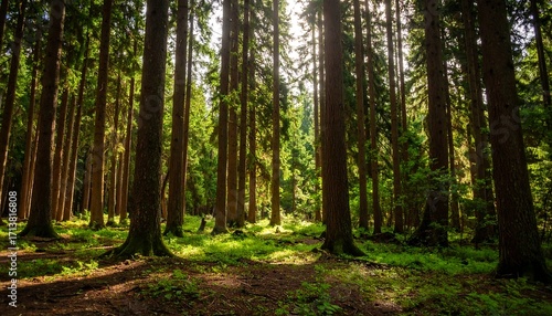 © Mar, Obraz premium Sunlight filters through a dense forest