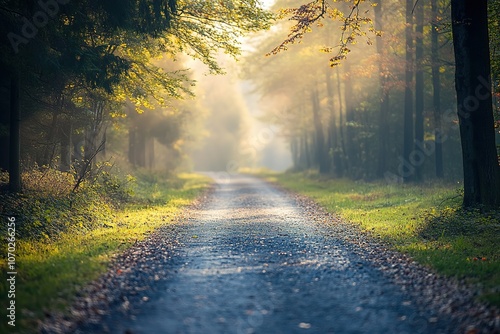 © Anton, Naklejka premium Sunlight filters through trees onto serene forest path