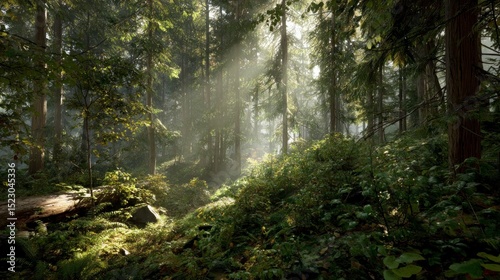 © maulan, Obraz premium Sunlight forest path