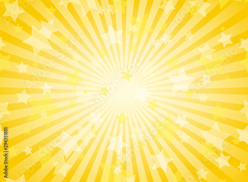 Obraz premium Sunlight horizontal background. Gold yellow color burst background with shining stars.