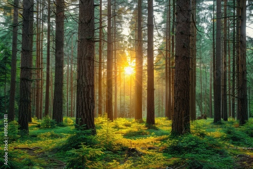 Fototapeta premium Sunlight Illuminates a Lush Forest Floor
