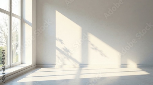 Fototapeta premium Sunlight Illuminates an Empty Room with a Large Window, Casting Soft Shadows...