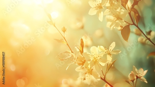 © Ardhana, Obraz premium Sunlight Illuminates Delicate Spring Blossoms on Branch
