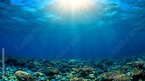 Fototapeta premium Sunlight Illuminating Underwater Coral Reef
