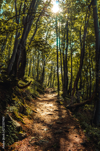 Obraz premium sunlight in forest path in bulgaria