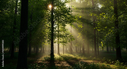 Fototapeta premium Sunlight in Green Forest