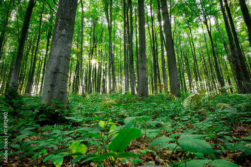 © marekbidzinski, Obraz premium Sunlight in the green forest.