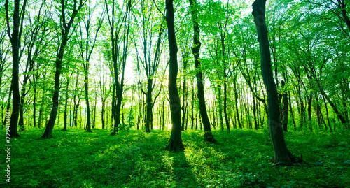 © Andrey Volokhatiuk, Obraz premium Sunlight in the green forest