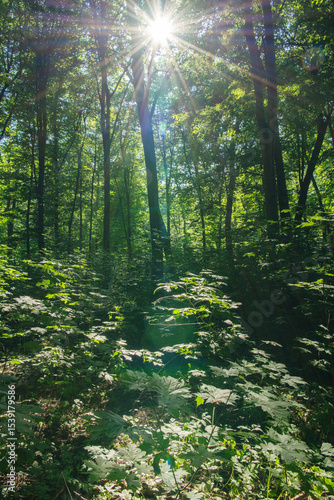 Fototapeta premium Sunlight in the green forest, spring time
