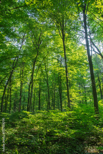 Fototapeta premium Sunlight in the green forest, spring time