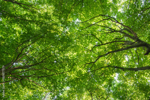 Obraz premium Sunlight in the green forest, spring time