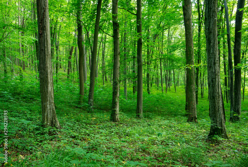 © nata777_7, Naklejka premium Sunlight in the green forest, spring time