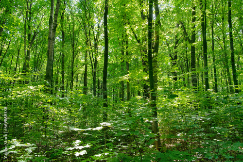 © nata777_7, Fototapeta premium Sunlight in the green forest, spring time