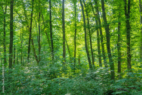 © nata777_7, Obraz premium Sunlight in the green forest, spring time