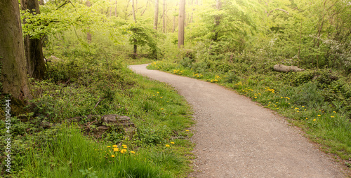 © Amore al Arte, Naklejka premium Sunlight in the green forest, spring time background.