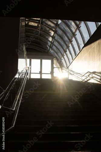 Obraz premium Sunlight on a dark staircase close up