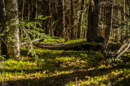 Obraz premium sunlight on moss in coniferous forest