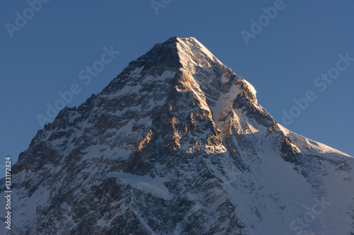Fototapeta premium Sunlight on top of K2 mountain peak in a morning, K2 trek, Pakis