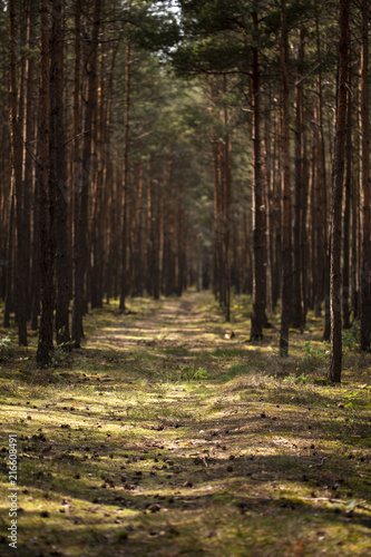 © Photographee.eu, Obraz premium Sunlight on walkway in the forest with trees during summer