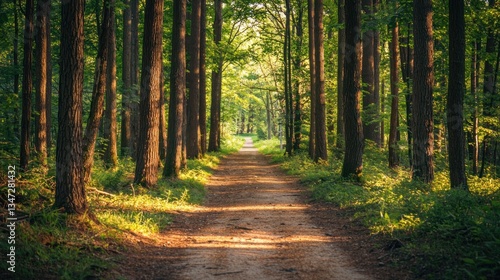© mustamingun, Obraz premium Sunlight path through forest trees