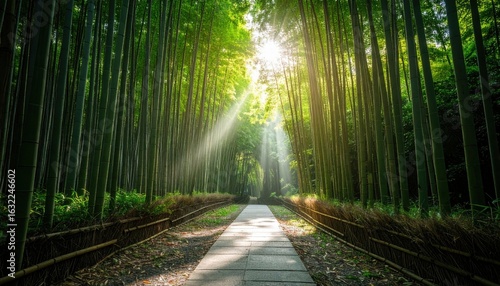 Fototapeta premium Sunlight Path Through Lush Bamboo Forest