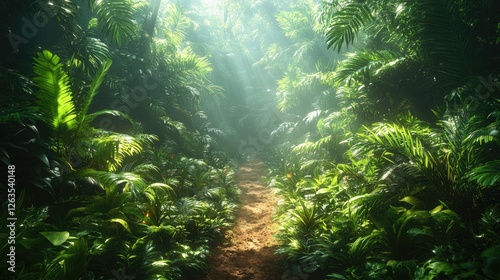 © Putra, Fototapeta premium Sunlight Path Through Lush Tropical Jungle