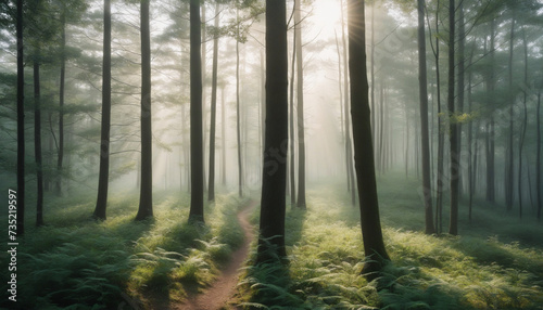 Fototapeta premium Sunlight peeking through the trees in the forest