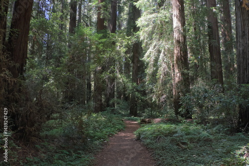 Fototapeta premium Sunlight peeks through the redwoods at Hendy Woods State Park, California