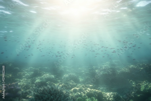 © Alexandr, Fototapeta premium Sunlight pierces through water, illuminating vibrant coral and f