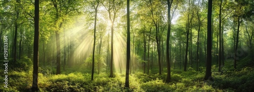 © photopixelstudio, Fototapeta premium Sunlight Piercing Forest Canopy