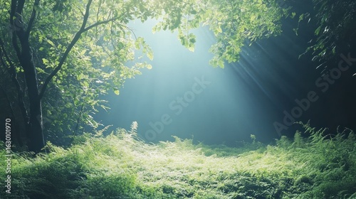 © Lesuna, Obraz premium Sunlight Piercing Forest Floor