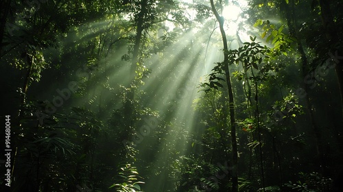 Obraz premium Sunlight Piercing Through a Dense Rainforest