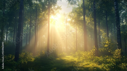 © IbneImam Studio, Obraz premium Sunlight Rays in Green Forest