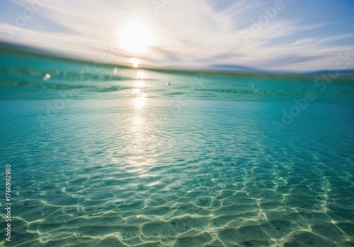 © MSTSELINA, Obraz premium Sunlight reflecting on clear turquoise ocean surface and underwater view