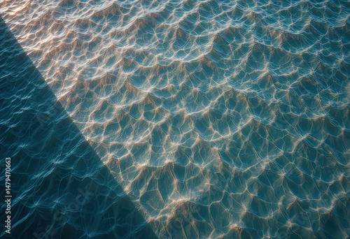 Obraz premium Sunlight Reflection on Ocean Surface With Diagonal Shadow Creating Abstract Water Texture Pattern