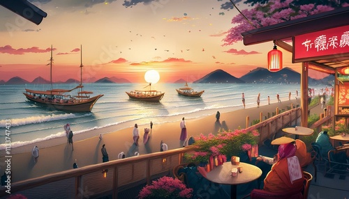 © 和正 住原, Fototapeta premium Sunlight reflects off the caf? windows, enhancing the view.