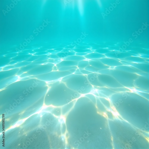 Fototapeta premium Sunlight Shimmering on a Sandy Ocean Floor Underwater