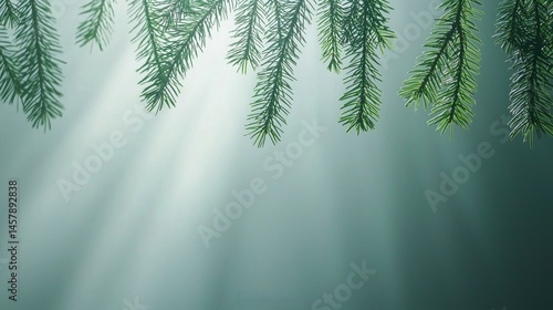 Obraz premium Sunlight shines through pine branches, creating a tranquil and natural forest...