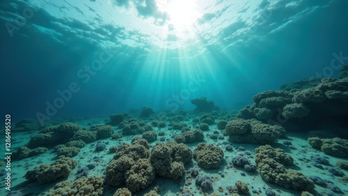 Fototapeta premium Sunlight shining over bleached coral reef with damaged marine ecosystem