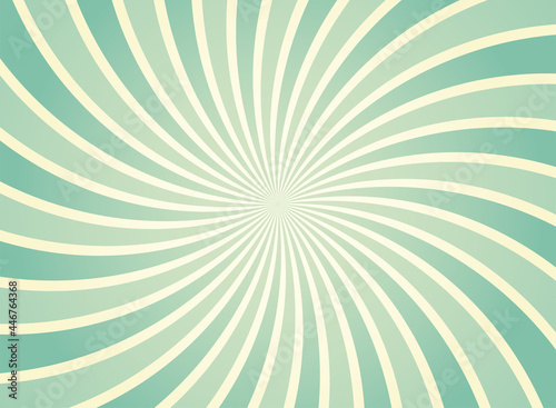 © Ne Mariya, Fototapeta premium Sunlight spiral wide background. Sage green and beige color burst background.