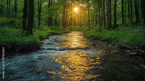 © kinkin, Fototapeta premium Sunlight Stream Forest Path