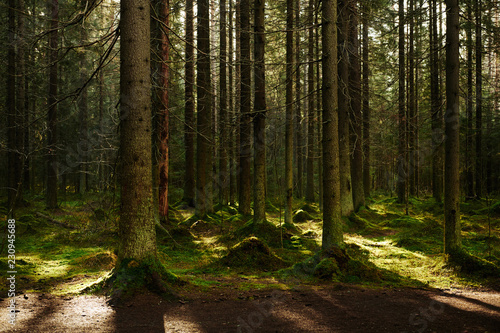© kkolosov, Obraz premium Sunlight streaming through a autumn pine forest
