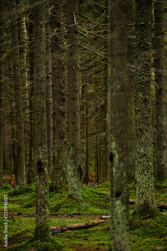 © kkolosov, Obraz premium Sunlight streaming through a autumn pine forest