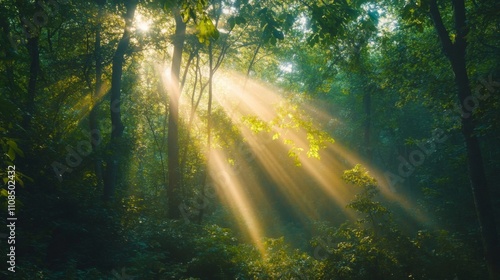 Obraz premium Sunlight Streaming Through a Dense Forest