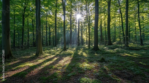 © bulegendut, Obraz premium Sunlight Streaming Through a Forest