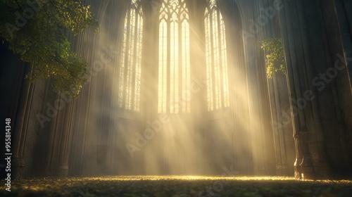 Naklejka premium Sunlight Streaming Through a Gothic Cathedral Window