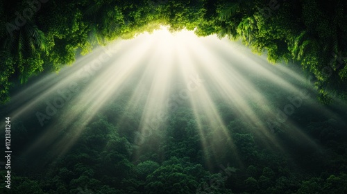 © artzone, Obraz premium Sunlight streaming through a lush forest canopy.